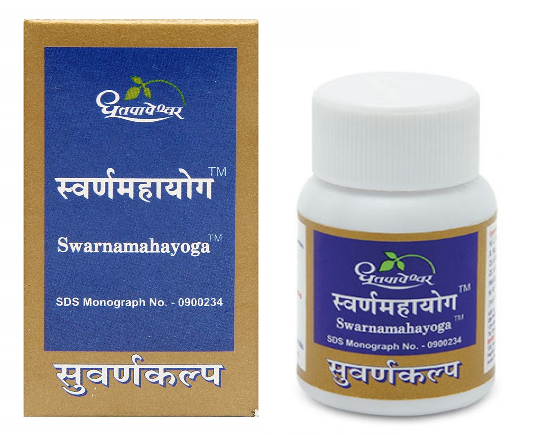 Swarnamahayoga is an effective Suvarna Kalpa useful in extremely chronic Vata disorders. Contents like Bhasmas of Suvarna, Rajata, Loha, Abhraka, Mandoora, Vanga, Naga, provide the body with an ample amount of nourishment especially the bones & nerves. It acts as Rasayan, Balya, Ojovardhan & is extremely beneficial in Dhatukshyayajanya vikar.